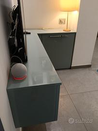 Mobile TV verde Tiffany, Base TV sospesa, lato angolare poggia a terra. Mobile capiente e in ottimo stato.