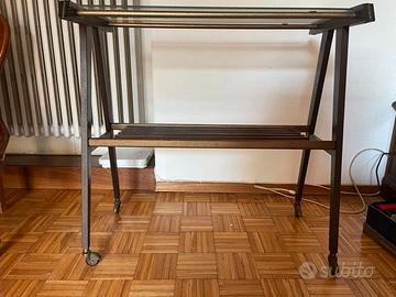 Mobile per televisione vintage, anni '50, con ripiano principale in vetro, secondo ripiano e gambe in metallo. Le misure sono 84x45x84.