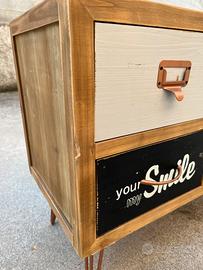 Mobile TV Vintage 6 Cassetti Colorati in Legno Massello di Abete. Misure: L 110 x P 34 x H 58 cm Ritiro a domicilio, no spedizione.