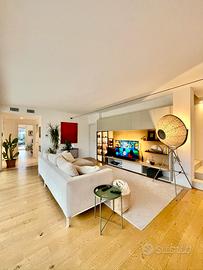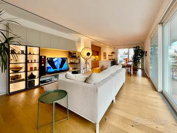 Vendo mobile soggiorno di Novamobili come da foto. Praticamente nuovo, ha solo un anno di vita. Realizzato in legno impiallacciato rovere e laccato opaco tortora. Con vetrinetta doppia illuminata.