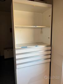 Mobile ufficio H tot 220 cm Le due scansie sono in tot alte 80 La parte dei cassetti h 40 cm Larghezza 84 cm Profondita 40 cm Regalo poiche ingiallito dal tempo ma perfettamente utilizzabile in un ufficio