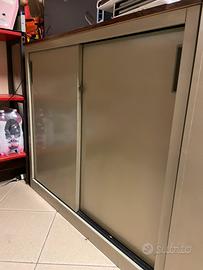 Mobile armadio ad ante scorrevoli in metallo. Mobile in buone condizioni, presenta piccoli segni di usura. Produzione: Olivetti Synthesis Periodo: 1970 - 1979 Misure: 120x45x105 cm