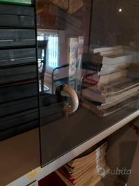 2 Mobili per ufficio con vetrina nella parte superiore e nella parte inferiore uno con sportelli e l’altro aperto. In legno laccato bianco e grigio. Possibilità di acquistare anche 1 solo pezzo.