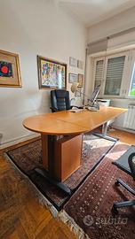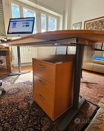 arredamento ufficio rovere scrivania 200cmx80cm vetrina doppia anta porta documenti 123cm x 41cm H 171cm mobile ante scorrevole H 95cm 95cmx45 cm cassettiera H 55cm L42cmx40cm con supplemento di poltrona scrivania €100. Disponibile dal 15 Aprile 2026