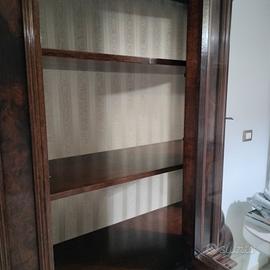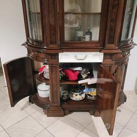 Mobile antico in radica di noce, composto da 2 parti separate: madia contenitiva e vetrina. Larghezza 150,profondità 50, altezza 215