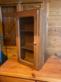 Vendo vetrinetta in legno con anta in vetro con due ripiani all’interno in legno. Misure: 675x345mm profondità: 160mm