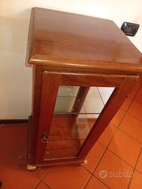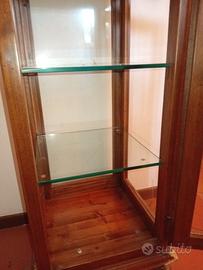 Mobile antico in legno e vetro con scaffali interni in vetro.