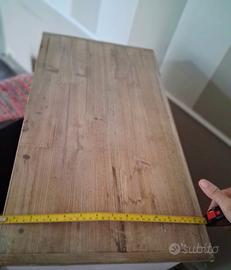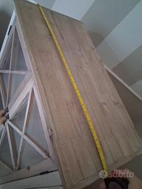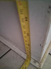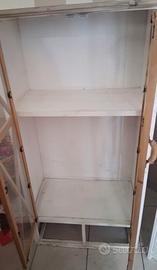 Mobile vetrina a due ante in stile Shabby Chic, perfetta per arredare con gusto soggiorno, sala da pranzo o ingresso. *Caratteristiche:* - *Stile*: Shabby chic / country / provenzale con finitura decapata bianca e dettagli in legno naturale - *Ante*: Doppia anta con vetro e decoro a croce in legno, che dona leggerezza e lascia intravedere gli oggetti esposti - *Maniglie*: Doppie maniglie in corda intrecciata con supporti neri, tipiche dello stile rustico-chic - *Struttura*: Due vani a giorno nella parte inferiore, ideali per ceste o scatole decorative - *Materiale*: Legno con effetto anticato volutamente invecchiato - *Utilizzo*: Ideale per esporre servizi di bicchieri, bottiglie, libri, oggetti decorativi o stoviglie *Condizioni*: Mobile usato in buone condizioni, presenta solo i segni tipici della finitura shabby volutamente anticata. *Dimensioni*: H 123cm,larghezza cm 64,profondità 35 cm. Mobile molto versatile che porta subito luce e un tocco romantico all’ambiente. *Prezzo*:35,00€ trattabile Ritiro a mano a Tavullia (PU).