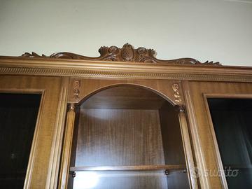 Vendo mobile da soggiorno in legno, composto da due parti indipendenti, alla base ante e cassetti e nella parte superiore con vetrine. Stile classico, con dettagli decorativi e vetri lavorati. Solido, capiente e perfetto per chi cerca un mobile robusto e di qualità. La parte superiore offre ampio spazio per esporre servizi, cristalleria o oggetti decorativi; la base ha diversi vani chiusi e cassetti molto capienti. Condizioni ottime, con normali segni del tempo. Misure: Altezza :198 Lunghezza:244 Prezzo trattabile.