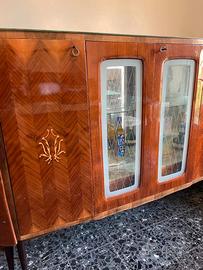 Vendo elegante mobile vetrinetta bar da salotto in stile vintage/modernariato. Il mobile è caratterizzato da un raffinato piano in vetro effetto marmorizzato e da una struttura in legno con lavorazioni decorative. Composizione: •2 ante laterali in legno con intarsi •2 ante centrali in vetro lavorato •Interno centrale con specchio e ripiano in vetro, ideale come mobile bar o esposizione Design elegante e scenografico, perfetto per soggiorni dal gusto retrò o contemporaneo. 📐 Misure: •Lunghezza: 177 cm •Altezza: 130 cm •Profondità: 42 cm 💡 Disponibili anche altri mobili coordinati (tavolo con sedie e credenza con specchio) per arredare l’ambiente completo. Condizioni buone, con normali segni del tempo. VALUTO PROPOSTE SERIE PER MESSSAGGIO 📍 Ritiro a mano