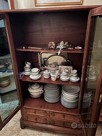 Mobile vetrinetta in legno con mensole e cassetti