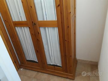 Mobile con 3 ripiani interni/ vetrinetta in legno pino di svezia. dotato di chiave per chiusura ante. misure massimo ingombro larghezza 117,5 cm altezza 185 cm profondità 47,5 cm trasportabile smontato.