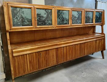Caratterizzato nella parte superiore da 6 ante in vetro decorato. All’intento ogni anta è arricchita da uno specchio.