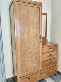 Mobile multifunzione originale anni '50 in legno chiaro, composto da: Anta guardaroba (appendiabiti). Cassettiera laterale con 3 cassetti + 1 cassetto grande alla base. Specchiera integrata e maniglie originali in ottone. Struttura solida. Valuto offerte, ritiro in zona Lecco e provincia.