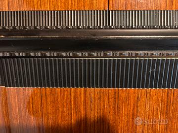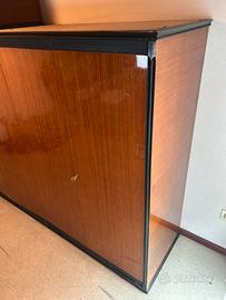 Vendo elegante set di mobili vintage anni ’60 in stile modernariato italiano, composto da: •Mobile grande (credenza/armadio) dimensioni: 305 cm (L) x 160 cm (H) x 58 cm (P) •Comò coordinato dimensioni: 185 cm (L) x 40 cm (H) x 45 cm (P) •Specchio abbinato con base in legno nero (disponibile su richiesta) Materiali: Struttura in legno con impiallacciatura lucida (probabilmente noce/mogano), dettagli e profili neri, maniglie in ottone. Condizioni: Buone condizioni generali, con normali segni del tempo coerenti con l’età. Mobile solido e capiente. Ideale per: Arredo vintage, modernariato, casa anni ’60, studio o negozio. Prezzo: 950 Ritiro: Ritiro a carico dell’acquirente (mobile di grandi dimensioni). Contattami per maggiori informazioni o altre foto.