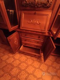 Mobile con specchio in buono stato, con ante lavorate... tavolo rotondo con lavorazione