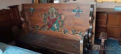 panca trasformabile in tavolo tutta in legno massello con intarsi colorati