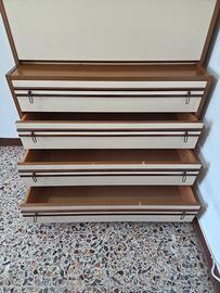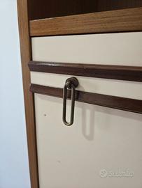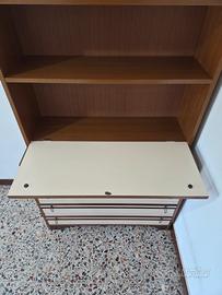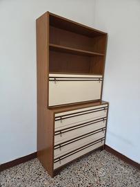Mobile vintage in ottime condizioni. Cassettiera e libreria con ribalta, adatta anche da usare come scrivania. Design semplice e versatile. Parte superiore del mobile separabile dalla parte sotto. Misure: - larghezza: 94cm - profondità (parte sotto): 42cm - profondità (parte sopra): 28cm - altezza (parte sotto): 78cm - altezza (parte sopra): 98cm - altezza complessiva: 176cm - profondità con ribaltino aperto: 62cm