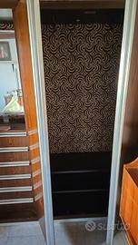 Mobile vintage da entrata, con 6 cassetti, specchiera e due ante. Interno tappezzato con tessuto marrone e beige con motivo geometrico.