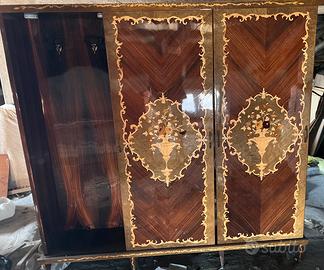 Mobile in legno con due ante scorrevoli, due vani appendiabiti, specchio e piccolo cassetto centrale. Dimensioni: 180x35 cm h 174cm