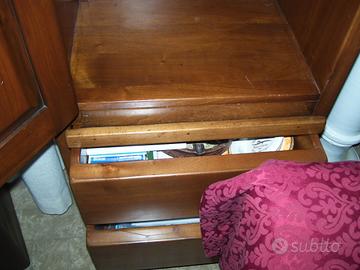 Mobiletti 4 adatti per complementi d'arredo in vero legno di noce massello anni 90 e/o testata da letto, ingresso, soggiorno, massello anni 90 completi di chiavi, piani interni, cassetti, piano d'appoggio, misure: