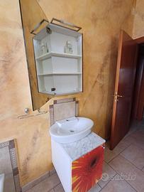 2 mobiletti bagno con anta, lavabo e specchi contenitori con luce. 1 vasca lavatoio