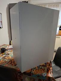vendo tre mobiletti bianchi lucido con barra per appenderli misure : altezza cm. 80. larghezza cm.60 . profondità cm. 40 a euro 50