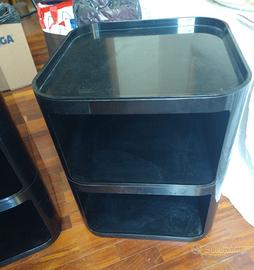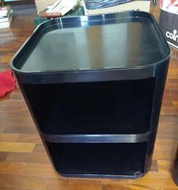 Coppia di mobiletti componibili Kartell di Anna Castelli, anni 70, colore nero. Stato come in foto, presentano segni dovuti all'utilizzo ed all'età. Non hanno ruote. Altezza: 45cm. Consegna a mano a Bologna.