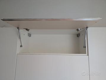 Mobiletti cucina a tre moduli verticali. Lunghezza totale 210cm, altezza 71cm. I due moduli verticali laterali sono larghi 60cm, i l modulo centrale a due ante che si apre verso l'alto è largo 90 cm. Davvero in buonissimo stato.