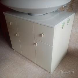 Mobiletti per bagno in ottime condizioni, con specchiera. Sportelli e cassetti funzionanti. Sopra 90x63x15 sotto 70x63x45. Ritiro in Udine, no spedizioni. Euro 35,00 tutto, no separati.
