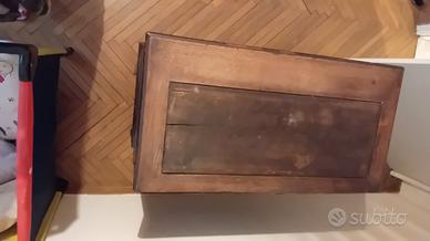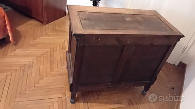 mobiletto anni 50 in legno con ruote e cassetti.