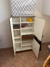 Il mobile è molto spazioso e ben organizzato, con ante e cassetto e ripiani interni.
