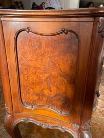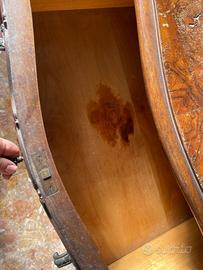 Mobiletto in legno massello e radica di noce da restaurare.