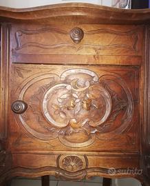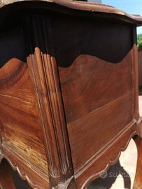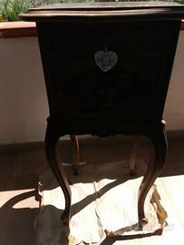 Mobiletto antico francese, colore noccie con piano in marmo rosa.