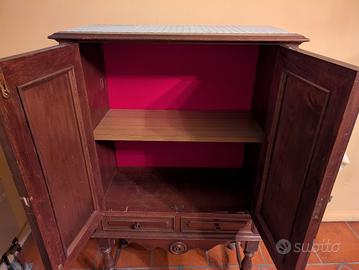 Mobiletto antico in legno massello con intagli