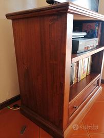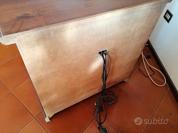 Mobiletto consolle legno arte povera porta tv con foro sul retro per fili, cassetto, mensola come in foto. Cm 84x46x80 h cm Si vende senza oggetti sopra
