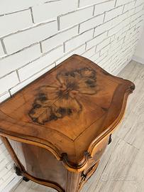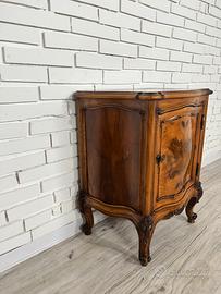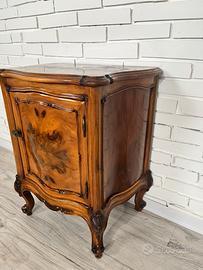Elegante mobiletto in noce e radica di quercia, con anta bombata.