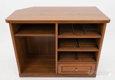 Regalo per inutilizzo mobiletto multimediale realizzato da un artigiano, robusto e molto funzionale. Il mobile è color noce ed è caratterizzato da finiture di qualità e soluzioni salvaspazio ideali per collezionisti di musica e cinema vintage. Caratteristiche e Organizzazione: •Magazzino estraibile per VHS: un vano verticale dedicato alle videocassette. •Magazzino estraibile per CD: un secondo vano verticale ottimizzato per i dischi. •Cassetto superiore: utile per accessori o telecomandi. •Vano a giorno: spazio aperto ideale per lettori DVD, decoder o console. Dimensioni: •Larghezza: 105 cm •Profondità: 59 cm •Altezza: 82 cm Condizioni e Ritiro: Il mobile è in buone condizioni strutturali. Essendo un regalo, è richiesto il ritiro a mano a carico dell'interessato a Zola Predosa (BO). Non si effettua spedizione. Nota: Ottimo per chi vuole arredare una tavernetta o per amanti del vintage che cercano un pezzo unico e solido.