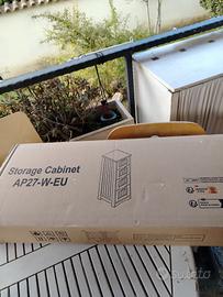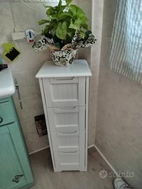 Vendo pratico mobiletto a colonna salvaspazio, ideale per il bagno, la camera o la lavanderia. Il design è pulito e versatile, con un tocco stile "shabby chic" grazie alla lavorazione a doghe sui cassetti.