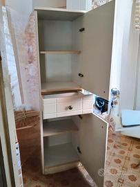 Vendo mobiletto a colonna per il bagno, laccato bianco con due antine ed un cassetto. Misure: A. 125 cm, L. 35 cm, P. 33 cm. Ritiro a carico dell'acquirente.