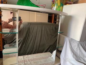 Mobiletto da bagno con anta a specchio apribile e luce.