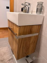 Mobile per Bagno per Ospiti COMPACT 450 con Lavabo in Ceramica - 45 cm - Ripiano laterale sinistro. Mensola sinistra - con lavello 45 cm. Misure sulle foto