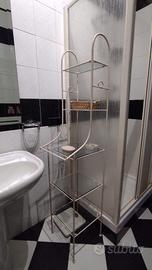 Mobiletto per il bagno francese, struttura in ferro battuto con porta asciugamani e ripiani in vetro. Colore bianco. Dimensioni: 35x40 e altezza 1.65 m Cinque ripiani di cui 3 grandi e due piccoli. Ottime condizioni. Ritiro agevole, piano rialzato. Comodissimo alla strada carrabile.