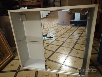 Mobiletto bagno bianco con 2 ante scorrevoli a specchio e un ripiano in vetro: L 65 H 58 P 16