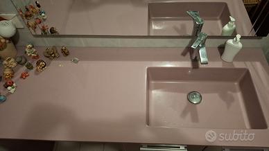 Mobiletto Bagno color glicine 140x50cm, composto da porta-lavatrice da 70cm + mobiletto con 2 antine da 35cm, compreso di lavandino in Geacril da 140x51cm color glicine e miscelatore modello Matilde.