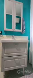 Per ristrutturazione bagno vendesi mobile per lavabo con 2 cassetti della serie Godmorgon di Ikea. Completano il mobile per lavabo i piedini regolabili, il lavabo stesso con miscelatore Grohe e tubazioni di scarico. Tutto è in condizioni molto buone.