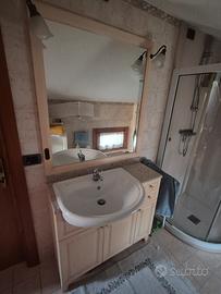 Mobiletto bagno in legno completo di specchio 2 applique e lavabo in ceramica.