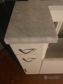 Mobilino bagno piano marmo con porta asciugamani due cassettini e sportelli. Misure 107X35X83 Sprovvisto di lavabo