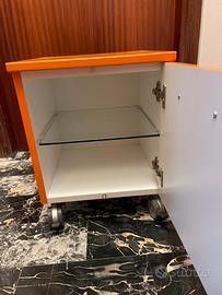 Mobiletto bagno con ruote, arancione laccato. H 0,37 (con ruote 0,45) L 0,35 P 0,37 Ritiro in loco