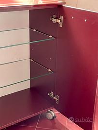 Come da titolo, mobiletto Arbi laccato colore bordeaux su rotelle con freno, dimensioni LxPxH 70x38x75 cm.